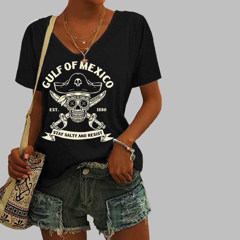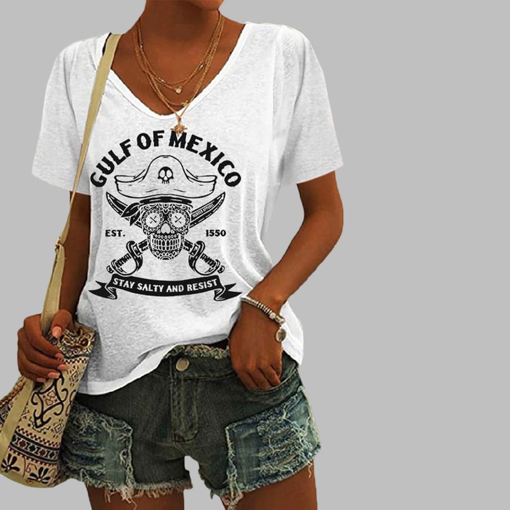 Our Women's Gulf Of Mexico Est 1550 Stay Salty And Resist Print T-Shirt is the perfect way to show off your personality and style. Made of 100% cotton, they are designed to be comfortable and breathable all day long. With a wide variety of designs, colors, and styles available, you can find something that will add a unique flair to any outfit. Whether you’re looking for something cool, funny, or just plain unique, we have the perfect t-shirt for you.