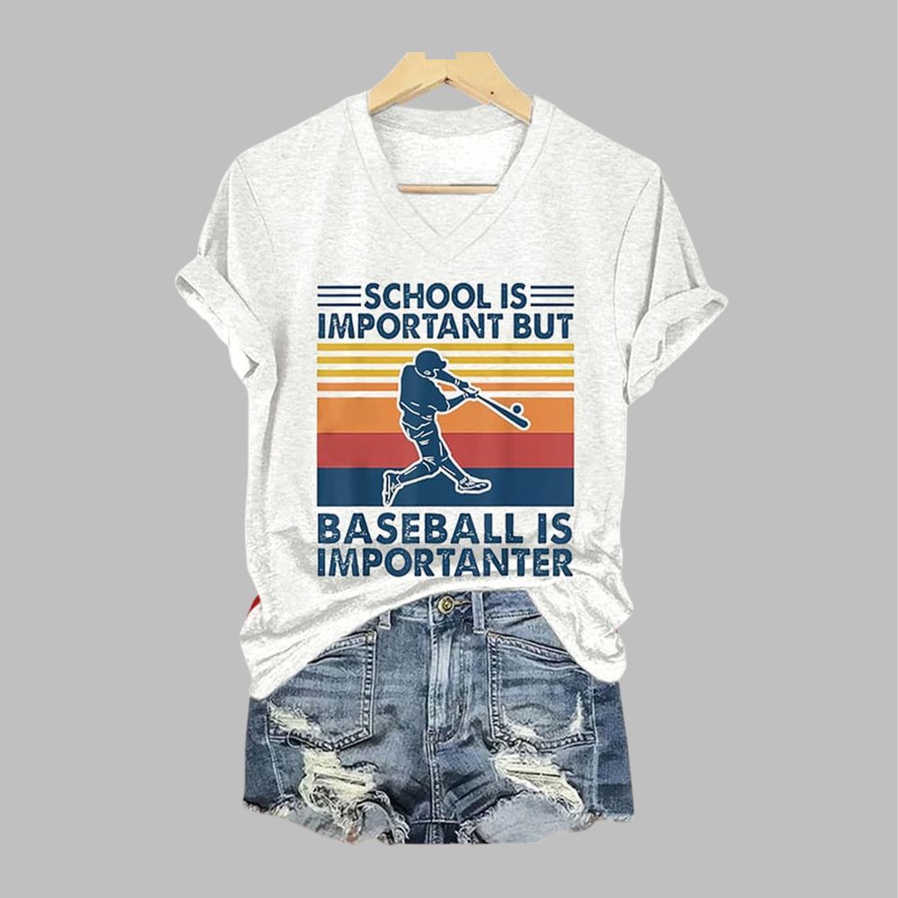Women’s School Is Important But Baseball Is Importanter Printed Short-Sleeved T-Shirt